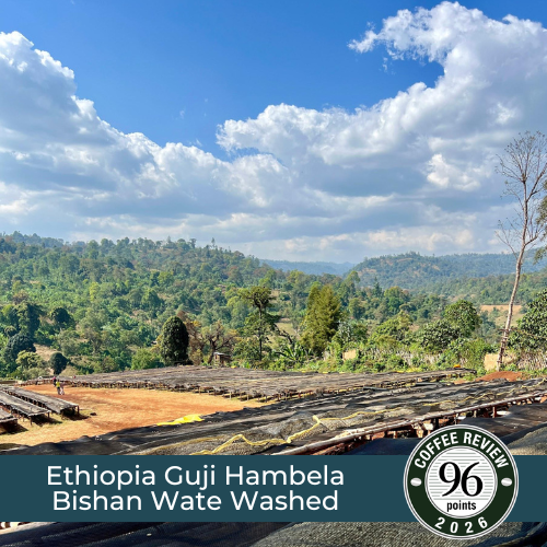 Bishan Wate, grown at 2,200 meters along Ethiopia’s Wate River, is meticulously washed to showcase exceptional clarity and structure. A 96-point coffee —among the highest-rated reviewed in 2026—it opens with white peach and lime zest, layered with jasmine and honeysuckle florals, and finishes with refined cane sugar sweetness and soft cocoa. A vivid expression of high-elevation terroir and precise craftsmanship, this cup is vibrant, balanced, and truly unforgettable.